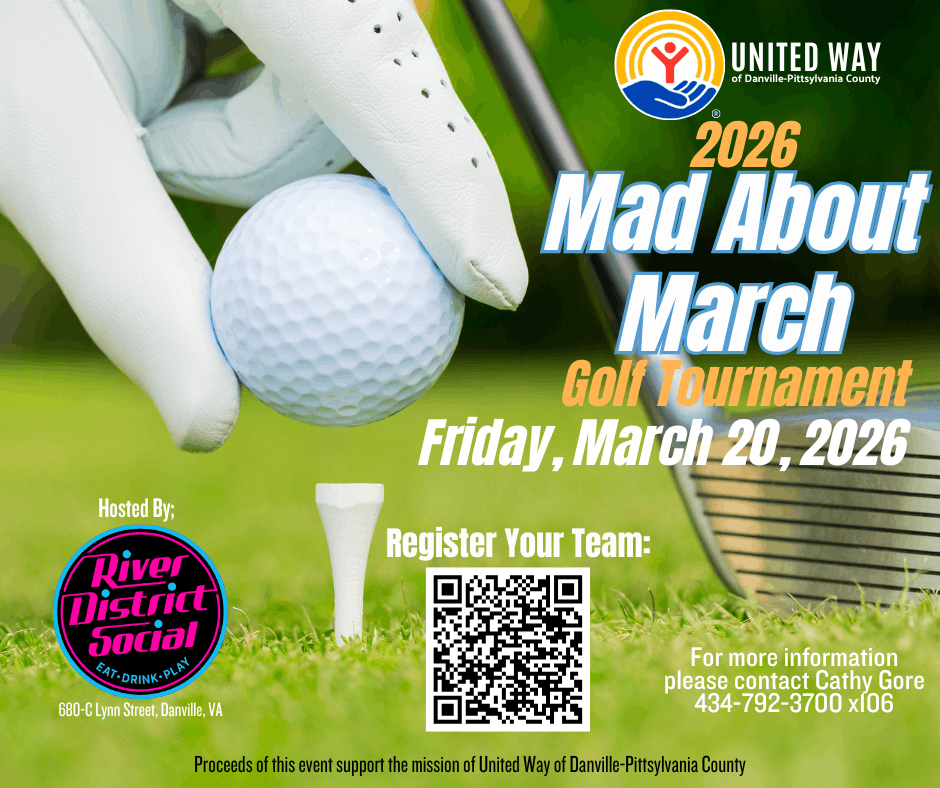 Join United Way of Danville-Pittsylvania County on Friday, March 20 for a golf tournament. All proceeds of this event support the mission of United Way of Danville Pittsylvania.